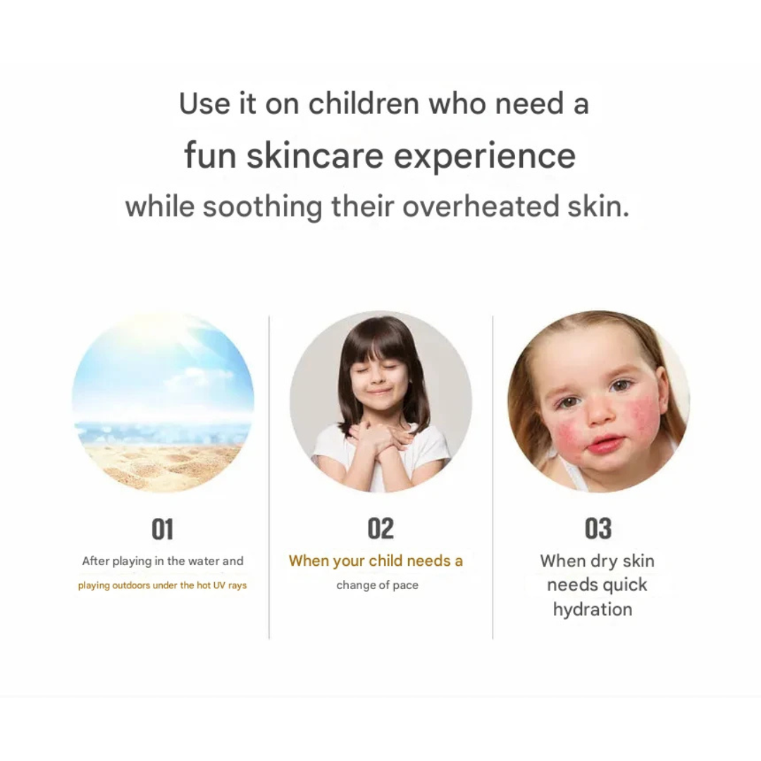 The Atopalm Kids Froggy Mask Pack delivers cooling, soothing hydration to children’s sensitive skin. This cheerful froggy-print sheet mask helps calm skin that’s been heated by sunlight, UV rays, or temperature changes, providing instant relief and refreshing moisture.