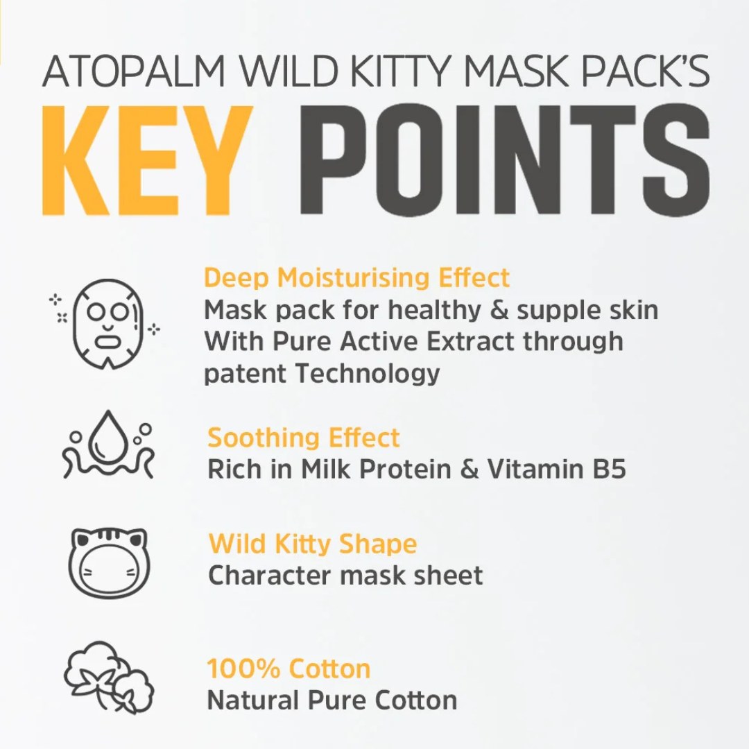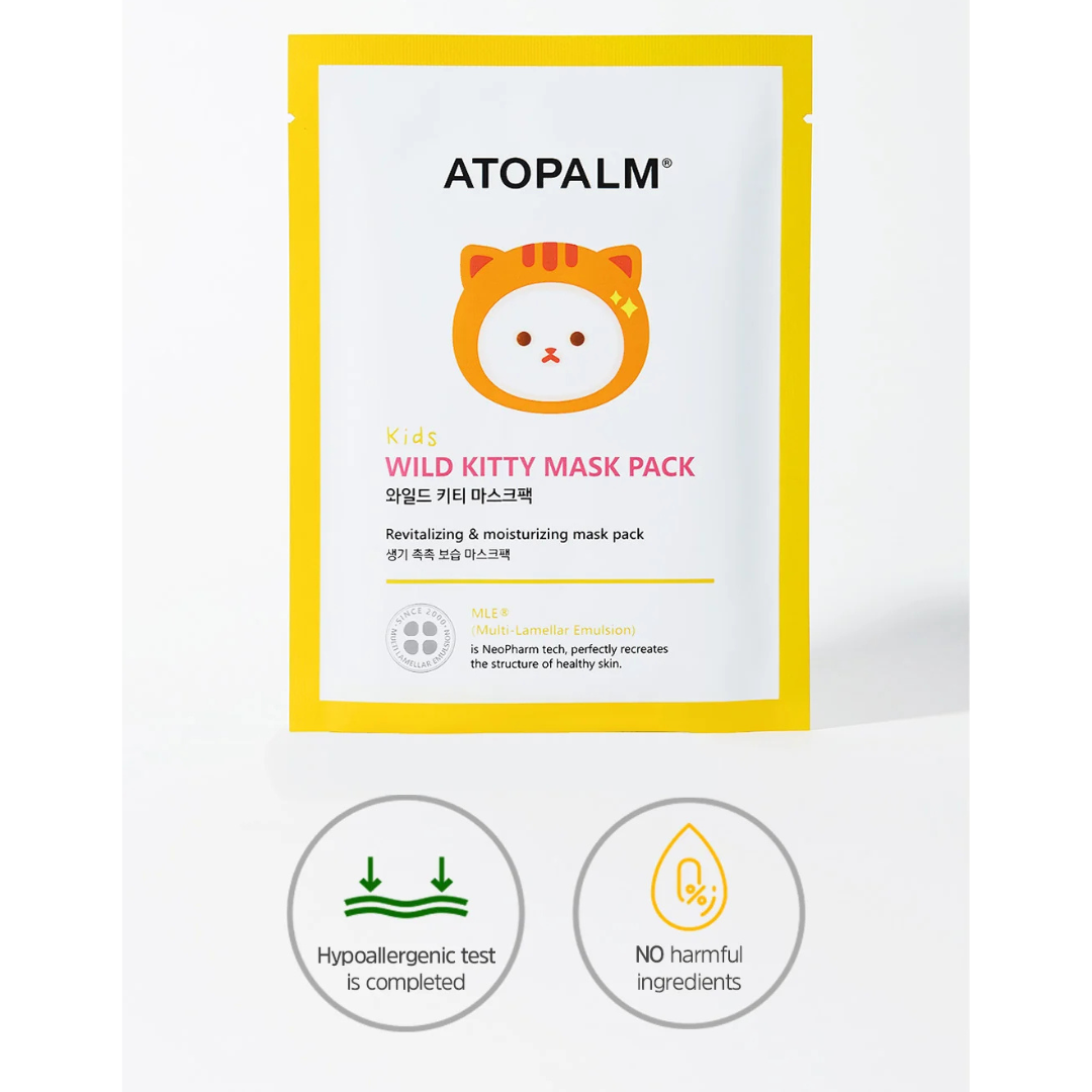 The Atopalm Wild Kitty Mask Pack brings gentle hydration and soothing care to children’s delicate skin. This fun kitty-print sheet mask is infused with milk proteins to moisturize and smooth, helping little faces feel comfy and refreshed after outdoor play or long hours in dry, air-conditioned rooms.