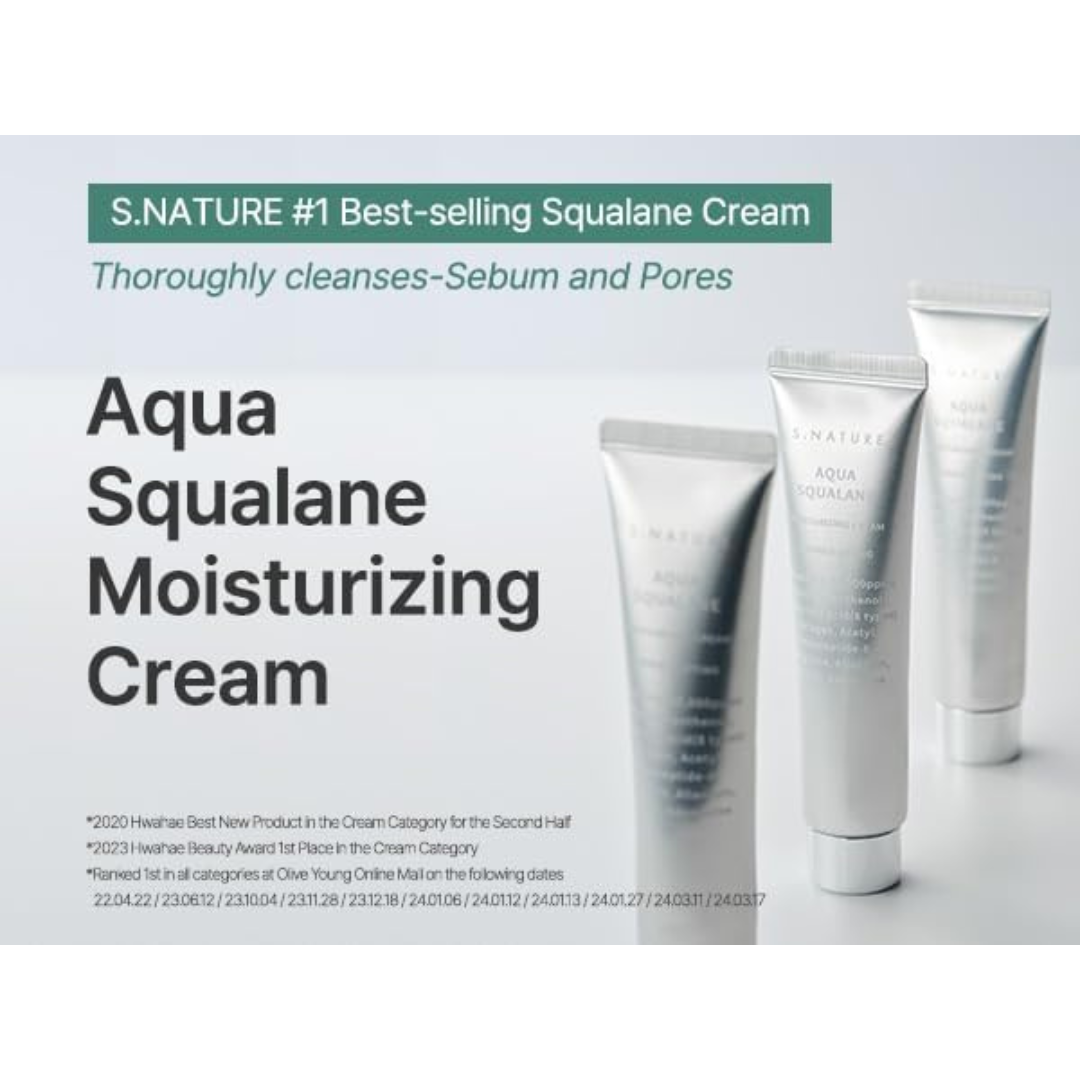 Deliver deep, long-lasting hydration with S. Nature’s Aqua Squalane Moisturizing Cream — a top-rated Korean moisturizer loved for its lightweight yet intensive formula. Infused with 150,000ppm plant-derived squalane and 8 types of hyaluronic acid, it replenishes and locks in moisture for plump, radiant, and healthy-looking skin.